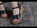Description: Jordana shows her cute feet and changes into a purple summer dress with some chunky sandals. |
